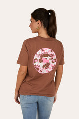 Ringers Western Signature Bull Women's Loose Fit T-Shirt - Saddle Brown / Cow Print