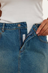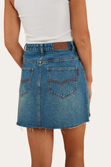 Venice Womens High Rise Denim Skirt - Mid Wash Blue