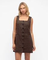 Meet your new go-to for effortless cool. The Elara Mini Dress from White Closet- features a flattering square neckline, wide shoulder straps, and a button-through front for that perfect blend of structured and feminine. Crafted in soft chocolate brown linen, it’s a timeless piece that works from day to night.