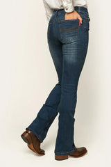 With its bootleg cut, the Katherine jean is perfect for riding horses and working the yards. It is a versatile style that can be dressed up with a dress shirt and heels. The perfect medium between function and fashion. The Katherine jean features our signature Ringers Western pocket embroidery and a five-pocket design.