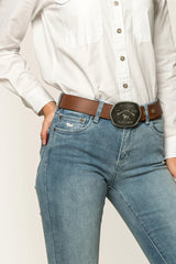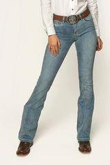 With its bootleg cut, the Katherine jean is perfect for riding horses and working the yards. It is a versatile style that can be dressed up with a dress shirt and heels. The perfect medium between function and fashion. The Katherine jean features our signature Ringers Western pocket embroidery and a five-pocket design.