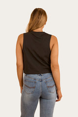 Ringers Western Lady Luck Womens Cropped Muscle Tank - Charcoal