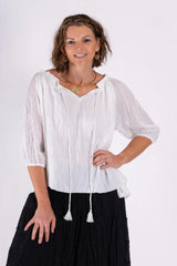 Ombak - Cotton Peasant Top / White