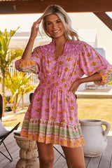 Introducing our stunning Blushing Meadow Print Olivia Mini Dress from Jaase the ultimate blend of comfort and style!
